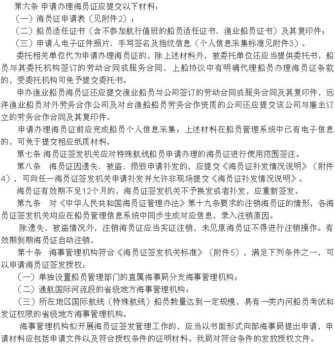 《<中華人民共和國海員證管理辦法>實(shí)施辦法》 2019年12月20日起施行!