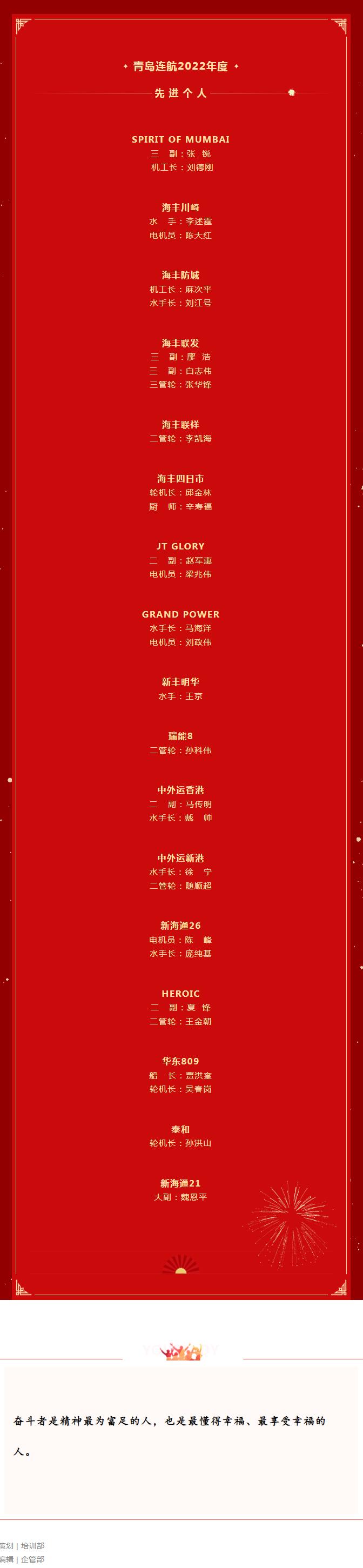 隆重表彰 │ 2022年度青島連航明星船舶和先進個人